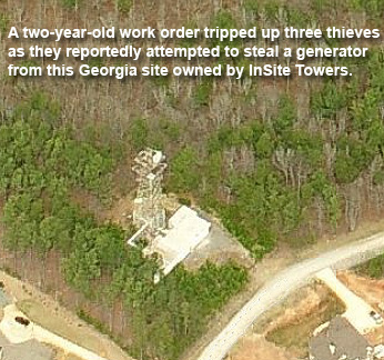 by former Arkansas contractor August 19, 2010 - A two-year-old work order helped to trip up three Arkansas men in their attempt to steal a generator from a Waleska, Ga. tower site earlier this month.