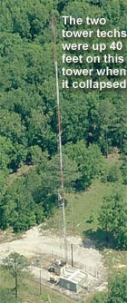 A truck hit the tower causing it to fall while the tower technicians were at the 40-foot level.