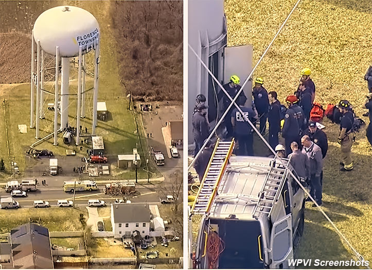 A 63-year-old tower technician is expected to be okay after suffering a medical emergency while working 80 to 100 feet above ground on a water tower-mounted cell site in Florence Township, NJ on Wednesday.